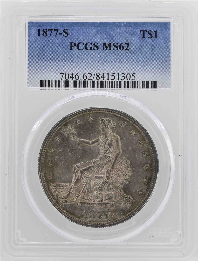 One 1877-S $1 Silver Trade Dollar Coin PCGS MS62. PCGS Graded.