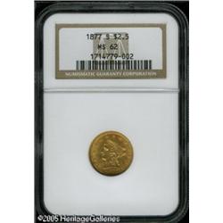 <B>1877-S $2 1/2 MS62 NGC.</B></I> Frosty and lustrous with excellent eye appeal. The surfaces have lovely orange-gold color. This would have graded higher except for a small mint-made flaw at the denomination. This appears to be a struck through error.<BR><I>Ex: Superior 1/04.</B></I>.<BR><I>From The Richard J. Chouinard Collection of United States Coins, Part Two.</B></I> Lot:7618