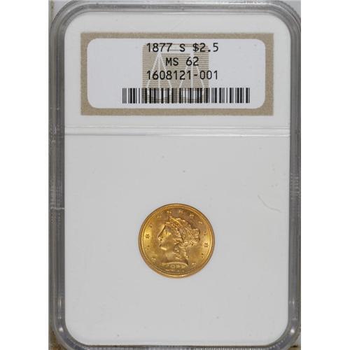 1877-S $2 1/2 MS62 NGC. Vibrant luster and radiant pum
