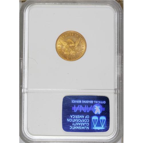<B>1877-S $2 1/2 MS62 NGC.</B></I> Vibrant luster and radiant pumpkin-gold toning combine with clean surfaces for pleasing eye appeal. A good strike, with only slight incompleteness near the left border of the shield. Only 35,400 pieces were struck. Census: 54 in 62, 11 finer (4/07).<BR><BR><b>Shipping:</b> Coins & Currency (<a target="_blank" href="http://www.heritageauctions.com/common/shipping.php">view shipping information</a>)