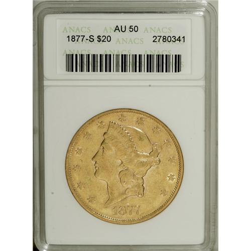 1877-S $20 AU50 ANACS. NGC Census: (15/1513). PCGS