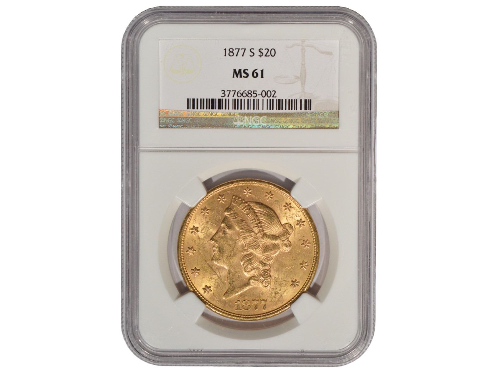 One 1877-S $20 Liberty Head Double Eagle Gold Coin NGC MS61.