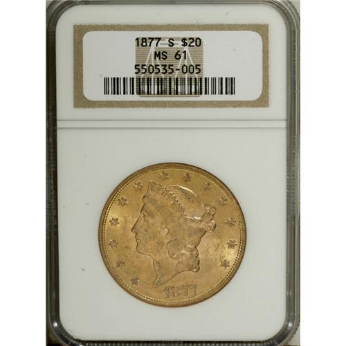 1877-S $20 MS61 NGC. As a type coin, the 1877-S is pri