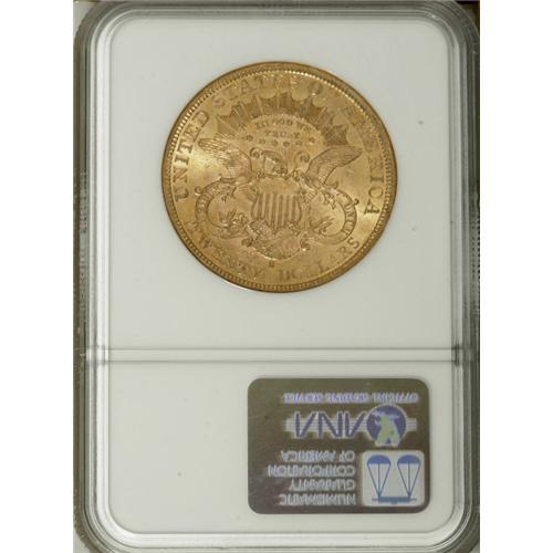 <B>1877-S $20 MS61 NGC.</B></I> As a type coin, the 1877-S is priced a bit more than a 1904, but it is certainly a more impressive date. Sharply struck and showing rich mint luster, a number of small to medium-sized abrasions on the cheek of Liberty explain the MS63 grade.<BR><BR><b>Shipping:</b> Coins & Currency (<a target="_blank" href="http://www.heritageauctions.com/common/shipping.php">view shipping information</a>)
