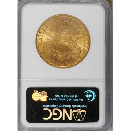 <B>1877-S $20 MS61 NGC.</B></I> NGC Census: (547/112). PCGS Population (253/200). Mintage: 1,735,000. Numismedia Wsl. Price for NGC/PCGS coin in MS61: $900. (#8984)<BR><BR><B>Coin Engraver:</B> James B. Longacre<BR><BR><b>Shipping:</b> Coins & Currency (<a target="_blank" href="http://www.heritageauctions.com/common/shipping.php">view shipping information</a>)