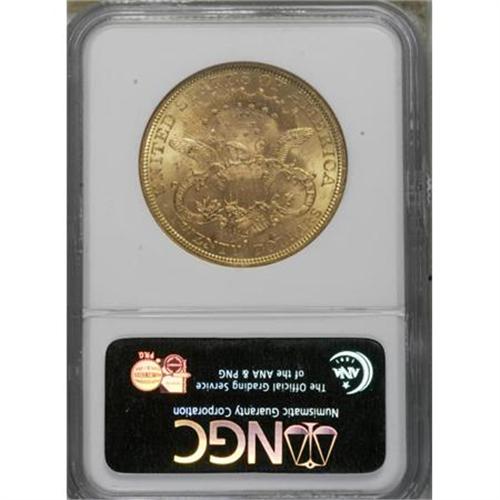 <B>1877-S $20 MS61 NGC.</B></I> NGC Census: (573/117). PCGS Population (296/204). Mintage: 1,735,000. Numismedia Wsl. Price for NGC/PCGS coin in MS61: $1,050. (#8984)<BR><BR><B>Coin Engraver:</B> James B. Longacre<BR><BR><b>Shipping:</b> Coins & Currency (<a target="_blank" href="http://www.heritageauctions.com/common/shipping.php">view shipping information</a>)