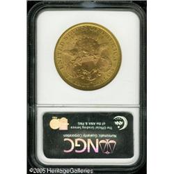 <B>1877-S $20 MS62 NGC.</B></I> There are remarkably few abrasions on either side of this orange-gold example, and the devices are boldly defined in all areas.<BR><I>From The Richard J. Chouinard Collection of United States Coins, Part Two.</B></I> Lot:9147