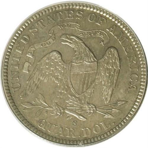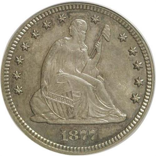 <B>1877-S 25C MS63 PCGS.</B></I> PCGS Population (68/111). NGC Census: (55/119). Mintage: 8,996,000. Numismedia Wsl. Price for NGC/PCGS coin in MS63: $350. (#5506)<BR><BR><b>Shipping:</b> Coins & Currency (<a target="_blank" href="http://www.heritageauctions.com/common/shipping.php">view shipping information</a>)