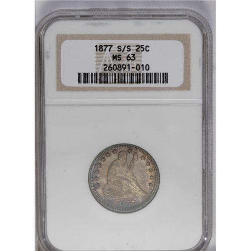 1877-S 25C Over Horizontal S MS63 NGC. FS-007, Briggs
