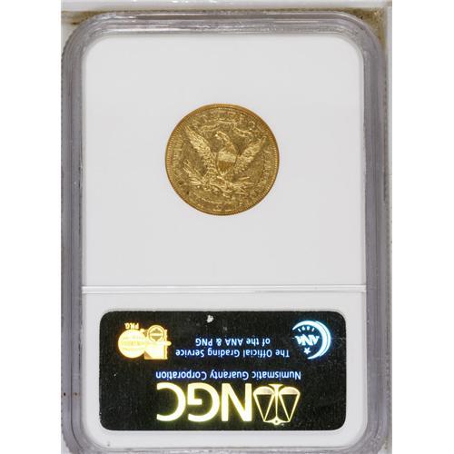 1877-S $5 AU55 NGC. Well struck and still-lustrous, wi