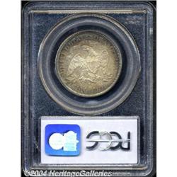<B>1877-S<50C> MS64 PCGS.</B></I> Type Two Reverse. This is an intriguing example with grayish-brown obverse framed by vivid blue and iridescent colors. The reverse is fully brilliant and prooflike with sky blue and bright gold toning near the borders. A few tiny abrasions are masked by the toning and are hardly worth mentioning. <BR><BR><B>Important notice:</B> Heritage usually auctions material at the rate of 200-250 lots per hour. On some occasions eBay Live bid software or the Internet may not be able to keep up with the pace of the auction. We recommend placing a realistic absentee bid now as insurance to avoid disappointment. Occasionally the auctioneer may eliminate or reject an eBay Live bid, and the auctioneer may also reopen a lot after the close of the eBay live bidding (usually because we missed an audience bid), and may reject your bid even if it shows you as the winning bidder. By bidding via eBay Live, you agree that Heritage may award the lot to another bidder at its sole discretion under the circumstances described above or any other reasonable circumstances. Since eBay bids are not shown to us until we open the lot on the floor, we treat those bids just like floor bids. In most cases the floor responds before the eBay bid is presented to us, due to Internet lag time, so for consistency we have made it a policy that floor bids are always considered first over tie eBay live bids. Also please note that all Heritage lots purchased through eBay Live carry a 20% Buyer's Premium. Please make sure you read the Terms and Conditions before you bid. </span></font></tr></table></td></tr></table>