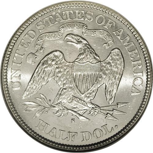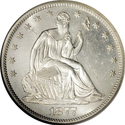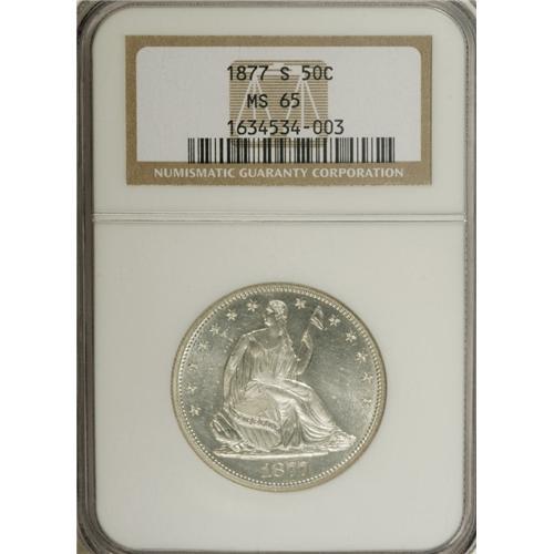 <B>1877-S 50C MS65 NGC.</B></I> Type Two Reverse with a closed bud above the H in HALF. This flashy and brilliant Seated type coin has an exquisite strike on Liberty's hair and the eagle's claws. The eye appeal is imposing despite the presence of a few unimportant field ticks. Census: 31 in 65, 21 finer (2/07).<BR><BR><b>Shipping:</b> Coins & Currency (<a target="_blank" href="http://www.heritageauctions.com/common/shipping.php">view shipping information</a>)