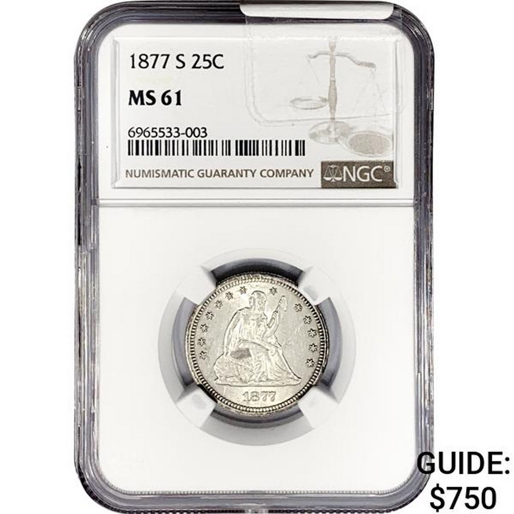 1877-S Seated Liberty Quarter NGC MS61