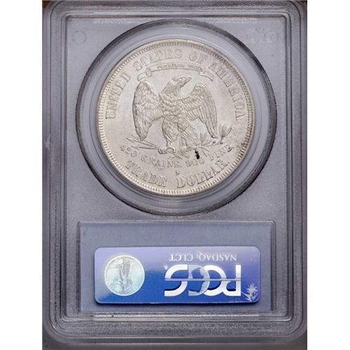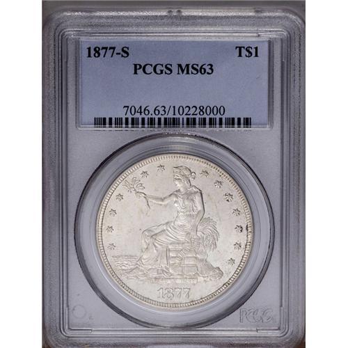 1877-S T$1 MS63 PCGS. This bright, flashy example disp 1877-S[T$1] MS63 PCGS.