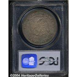 <B>1877-S<T$1> MS63 PCGS.</B></I> Luscious rose-gray toning blankets well struck, very lightly marked surfaces. <BR><BR><B>Important notice:</B> Heritage usually auctions material at the rate of 200-250 lots per hour. On some occasions eBay Live bid software or the Internet may not be able to keep up with the pace of the auction. We recommend placing a realistic absentee bid now as insurance to avoid disappointment. Occasionally the auctioneer may eliminate or reject an eBay Live bid, and the auctioneer may also reopen a lot after the close of the eBay live bidding (usually because we missed an audience bid), and may reject your bid even if it shows you as the winning bidder. By bidding via eBay Live, you agree that Heritage may award the lot to another bidder at its sole discretion under the circumstances described above or any other reasonable circumstances. Since eBay bids are not shown to us until we open the lot on the floor, we treat those bids just like floor bids. In most cases the floor responds before the eBay bid is presented to us, due to Internet lag time, so for consistency we have made it a policy that floor bids are always considered first over tie eBay live bids. Also please note that all Heritage lots purchased through eBay Live carry a 20% Buyer's Premium. Please make sure you read the Terms and Conditions before you bid. </span></font></tr></table></td></tr></table>