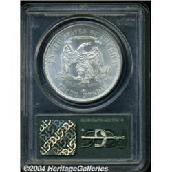 <table><tr><td><table><tr><td>1877-S T$1 MS64 PCGS. Medium gray patina with some gold undertones covers virtually mark-free surfaces. <BR><BR><B>Important notice:</B> Heritage usually auctions material at the rate of 200-250 lots per hour. On some occasions eBay Live bid software or the Internet may not be able to keep up with the pace of the auction. We recommend placing a realistic absentee bid now as insurance to avoid disappointment. Occasionally the auctioneer may eliminate or reject an eBay Live bid, and the auctioneer may also reopen a lot after the close of the eBay live bidding (usually because we missed an audience bid), and may reject your bid even if it shows you as the winning bidder. By bidding via eBay Live, you agree that Heritage may award the lot to another bidder at its sole discretion under the circumstances described above or any other reasonable circumstances. Since eBay bids are not shown to us until we open the lot on the floor, we treat those bids just like floor bids. In most cases the floor responds before the eBay bid is presented to us, due to Internet lag time, so for consistency we have made it a policy that floor bids are always considered first over tie eBay live bids. Also please note that all Heritage lots purchased through eBay Live carry a 20% Buyer's Premium. Please make sure you read the Terms and Conditions before you bid. <BR><BR><B>IMPORTANT ANNOUNCEMENT ABOUT RESERVES:</B> Heritage now divulges all reserves on its web site 7 days before every auction. If you want to know whether the reserve on this lot has been met, and if not, what the reserve amount is, please visit this lot page on the HeritageCoin.com web site, or email: bid@HeritageGalleries.com </span></font></td></tr></table></td></tr></table>