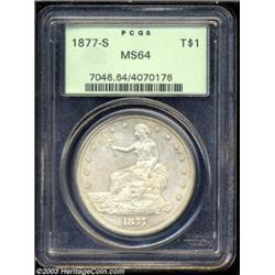 <table><tr><td><TABLE cellSpacing=0 cellPadding=0 width="100%" bgColor=#000000 border=0><TBODY> <TR><TD width="100%"><TABLE cellSpacing=1 cellPadding=3 width="100%" border=0><TBODY><TR><TD width="100%" bgColor=#79735c><FONT face=arial color=#ffffff size=3><B>Description</B> </FONT></TD></TR><TR><TD width="100%" bgColor=#ffffff><FONT face=arial size=2><B>1877-S T$1 MS64 PCGS.</B></I> Consistently bold with shimmering cartwheel luster veiled in light gray patina and golden accents. A well preserved representative of this once maligned denomination. </FONT></TD></TR></TBODY></TABLE></TD></TR></TBODY></TABLE><BR><A name=PricesRealized></A><TABLE cellSpacing=0 cellPadding=0 width="100%" bgColor=#000000 border=0><TBODY><TR><TD width="100%"><TABLE cellSpacing=1 cellPadding=3 width="100%" border=0><TBODY><TR><TD width="100%" bgColor=#79735c><A name=PR><FONT face=arial color=#ffffff size=3><B>Previous Prices from Heritage Auctions</B> </FONT></A></TD></TR><TR><TD bgColor=#f6f6ed><TABLE cellSpacing=0 cellPadding=0 width="100%" border=1><TBODY><TR><TD align=middle width="33%"><B>Date</B></TD><TD align=middle width="33%"><B>Service</B></TD><TD align=middle width="33%"><B>Price</B></TD></TR><TR bgColor=whitesmoke><TD width="33%"><B>11/12/2002</B></TD><TD width="33%">PCGS</TD><TD width="33%">$2,185.00</TD></TR><TR bgColor=whitesmoke><TD width="33%"><B>05/03/2003</B></TD><TD width="33%">PCGS</TD><TD width="33%">$2,070.00</TD></TR><TR bgColor=whitesmoke><TD width="33%"><B>09/28/2002</B></TD><TD width="33%">PCGS</TD><TD width="33%">$1,840.00</TD></TR><TR bgColor=whitesmoke><TD width="33%"><B>06/08/2002</B></TD><TD width="33%">NGC</TD><TD width="33%">$2,300.00</TD></TR><TR bgColor=whitesmoke><TD width="33%"><B>11/15/2001</B></TD><TD width="33%">NGC</TD><TD width="33%">$3,680.00</TD></TR><TR bgColor=whitesmoke><TD width="33%"><B>11/18/1999</B></TD><TD width="33%">PCGS</TD><TD width="33%">$2,616.25</TD></TR><TR bgColor=whitesmoke><TD width="33%"><B>10/04/1997</B></TD><TD width="33%">PCGS</TD><TD width="33%">$1,925.00</TD></TR><TR bgColor=whitesmoke><TD width="33%"><B>08/19/1995</B></TD><TD width="33%">PCGS</TD><TD width="33%">$1,760.00</TD></TR><TR bgColor=whitesmoke><TD width="33%"><B>06/01/2000</B></TD><TD width="33%">PCGS</TD><TD width="33%">$1,955.00</TD></TR><TR bgColor=whitesmoke><TD width="33%"><B>03/01/1998</B></TD><TD width="33%">PCGS</TD><TD width="33%">$1,650.00</TD></TR><TR bgColor=whitesmoke><TD width="33%"><B>06/01/2001</B></TD><TD width="33%">PCGS</TD><TD width="33%">$1,782.00</TD></TR><TR bgColor=whitesmoke><TD width="33%"><B>01/09/2002</B></TD><TD width="33%">PCGS</TD><TD width="33%">$2,530.00</TD></TR></TBODY></TABLE></TD></TR><TR><TD bgColor=#ffffff><FONT face=arial size=1 ?>PLEASE NOTE: All prices realized reflect the final hammer price PLUS the buyer's premium in auctions that charge a buyer's premium. Each item has a notation at the top of the listing indicating whether that lot included a buyer's premium. Example: A item that sells with a final hammer price of $100 and a 20% buyer's premium will display with a price realized of $120. All information listed is intended to be as accurate as possible, but errors are possible. Please use this guide carefully and inform us of any inaccuracies. </FONT></TD></TR></TBODY></TABLE></TD></TR></TBODY></TABLE><BR><TABLE cellSpacing=0 cellPadding=0 width="100%" bgColor=#000000 border=0><TBODY><TR><TD width="100%"><TABLE cellSpacing=1 cellPadding=3 width="100%" border=0><TBODY><TR><TD width="100%" bgColor=#79735c colSpan=6><FONT face=arial color=#ffffff size=3><B>Price Guide*</B> </FONT></TD></TR><TR bgColor=#f6f6ed><TD align=middle><B>Grade</B> </TD><TD align=middle><B>Coin World<BR>(Trends)</B> </TD><TD align=middle><B>Numismedia<BR>Retail</B> </TD><TD align=middle><B>Numismedia<BR>Wholesale</B> </TD><TD align=middle><B>Coin<BR>Universe</B> </TD><TD align=middle><B>Heritage<BR>Value Index</B> </TD></TR><TR bgColor=#ffffff><TD align=middle>63</TD><TD align=right>$1,400.00</TD><TD align=right>---</TD><TD align=right>$975.00</TD><TD align=right>$1,400.00</TD><TD align=right>$990.13</TD></TR><TR style="FONT-WEIGHT: bold" bgColor=#cccfdd><TD align=middle>64</TD><TD align=right>$3,000.00</TD><TD align=right>---</TD><TD align=right>$2,350.00</TD><TD align=right>$3,650.00</TD><TD align=right>$2,353.75</TD></TR><TR bgColor=#ffffff><TD align=middle>65</TD><TD align=right>$8,500.00</TD><TD align=right>---</TD><TD align=right>$6,725.00</TD><TD align=right>$10,500.00</TD><TD align=right>$6,187.50</TD></TR><TR bgColor=#ffffff><TD colSpan=6><FONT size=1>*All information listed is intended to be as accurate as possible, but errors are possible. No item may be returned or refused based on this information which is provided as a service to our customers. You should contact each pricing source directly to determine the accuracy of this information. </FONT></TD></TR></TBODY></TABLE></TD></TR></TBODY></TABLE><BR><TABLE cellSpacing=0 cellPadding=0 width="100%" bgColor=#000000 border=0><TBODY><TR><TD width="100%"><TABLE cellSpacing=1 cellPadding=3 width="100%" border=0><TBODY><TR><TD width="100%" bgColor=#79735c><FONT face=arial color=#ffffff size=3><B>Population Guide</B> </FONT></TD></TR><TR bgColor=#ffffff><TD align=middle><!-- Begin Output of Population Grid--><TABLE cellSpacing=0 cellPadding=0 width="100%" border=0><TBODY><TR><TD vAlign=center><TABLE cellSpacing=0 width="100%" border=1 cellsadding="3"><TBODY><TR><TD vAlign=center><TABLE cellSpacing=0 cellPadding=3 width="100%" border=1><TBODY><TR><TD vAlign=center align=middle bgColor=#f0f1e8 colSpan=2 <CENTER><FONT face=Arial size=2><B>PCGS Pop </B></FONT><CENTER></CENTER></TD><TD vAlign=center align=middle bgColor=#f0f1e8 colSpan=2><CENTER><FONT face=Arial size=2><B>NGC Pop</B></CENTER></FONT></TD></TR><TR><TD vAlign=center><FONT face=Arial size=2>(64)</FONT> </TD><TD vAlign=center align=right><FONT face=Arial size=2>120</FONT> </TD><TD vAlign=center><FONT face=Arial size=2>(64)</FONT> </TD><TD vAlign=center alig
