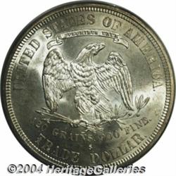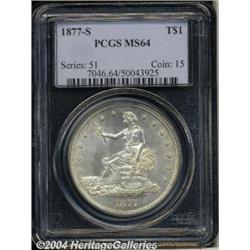 <B>1877-S<T$1> MS64 PCGS.</B></I> Large S, Heavy Date. Breen-5810. The first two digits in the date are joined. This is a common variety, and numerous minor date positions have been recorded. With a razor sharp strike and bright, glowing surfaces, this coin would make an attractive addition to a high quality date or type set. There are a few wispy abrasions in the fields, but the overall sheen is uncommonly smooth for the type.<BR><I>From The Del Rio Collection, Part One.</B></I> <BR><BR><B>Important notice:</B> Heritage usually auctions material at the rate of 200-250 lots per hour. On some occasions eBay Live bid software or the Internet may not be able to keep up with the pace of the auction. We recommend placing a realistic absentee bid now as insurance to avoid disappointment. Occasionally the auctioneer may eliminate or reject an eBay Live bid, and the auctioneer may also reopen a lot after the close of the eBay live bidding (usually because we missed an audience bid), and may reject your bid even if it shows you as the winning bidder. By bidding via eBay Live, you agree that Heritage may award the lot to another bidder at its sole discretion under the circumstances described above or any other reasonable circumstances. Since eBay bids are not shown to us until we open the lot on the floor, we treat those bids just like floor bids. In most cases the floor responds before the eBay bid is presented to us, due to Internet lag time, so for consistency we have made it a policy that floor bids are always considered first over tie eBay live bids. Also please note that all Heritage lots purchased through eBay Live carry a 20% Buyer's Premium. Please make sure you read the Terms and Conditions before you bid. </span></font></tr></table></td></tr></table>