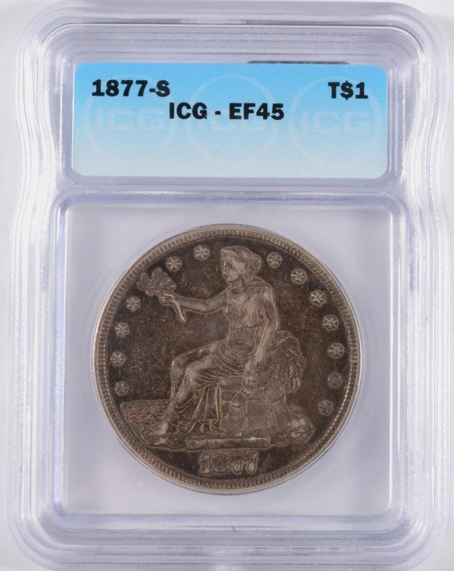 1877-S TRADE DOLLAR, ICG EF-45 NICE ORIGINAL COIN!