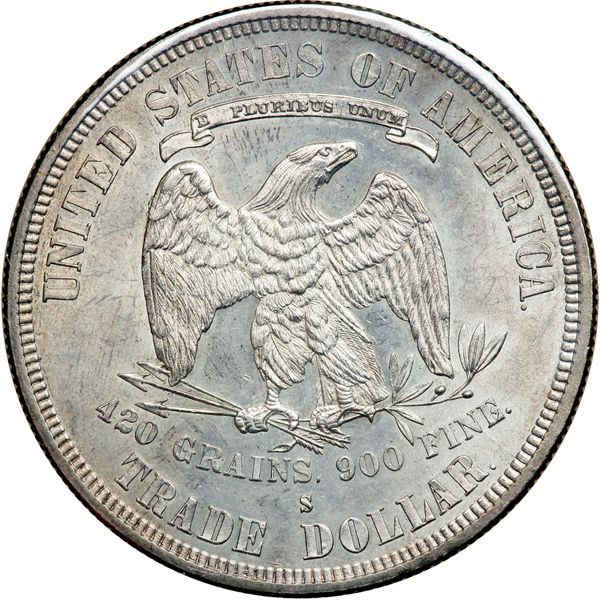 1877-S Trade Dollar. Looks like a near gem coin.