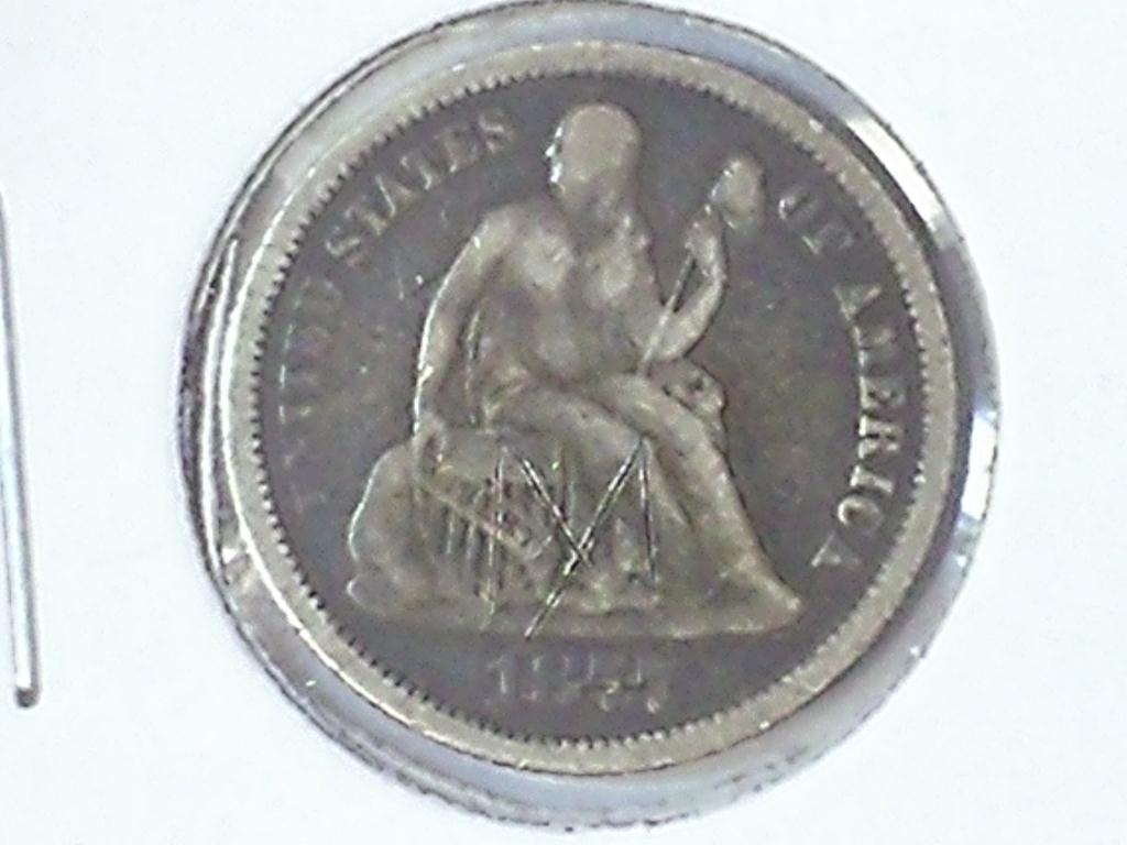 1877 SEATED LIBERTY DIME WITH GRAFFITI