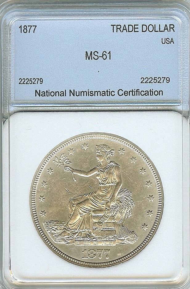 1877 SEATED SILVER TRADE DOLLAR NNC MS61