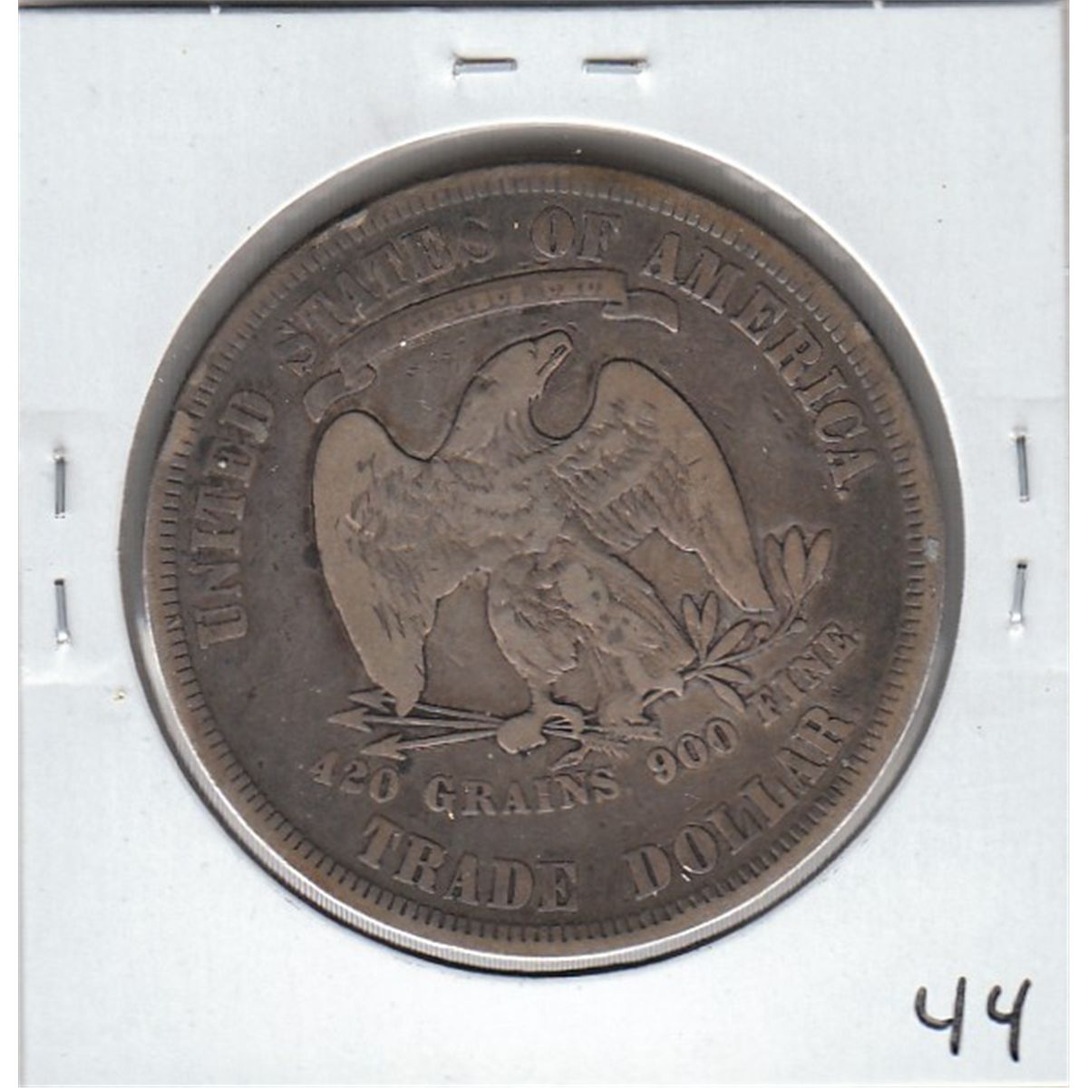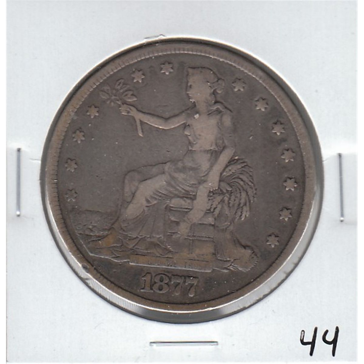 1877 SILVER TRADE DOLLAR GUN METAL TONE