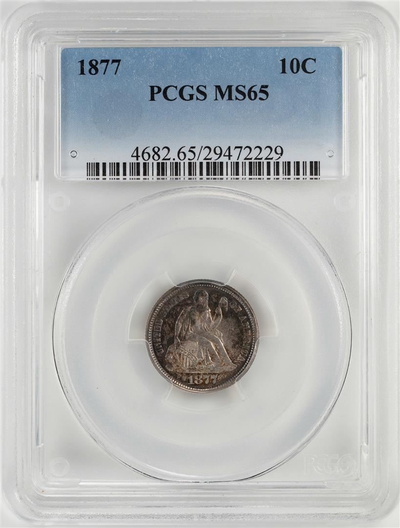 One 1877 Seated Liberty Dime Coin PCGS MS65. PCGS Graded.