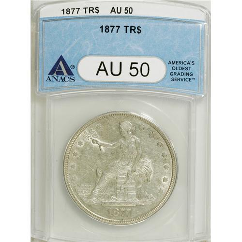 1877 T$1 AU50 ANACS. NGC Census: (10/292). PCGS Po
