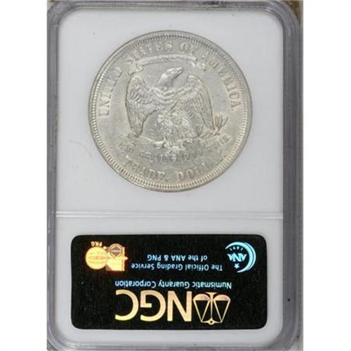 <B>1877 T$1 AU53 NGC.</B></I> NGC Census: (12/288). PCGS Population (19/283). Mintage: 3,039,710. Numismedia Wsl. Price for NGC/PCGS coin in AU53: $233. (#7044)<BR><BR><B>Coin Engraver:</B> William Barber<BR><BR><b>Shipping:</b> Coins & Currency (<a target="_blank" href="http://www.heritageauctions.com/common/shipping.php">view shipping information</a>)