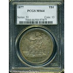 1877 T$1 MS64 PCGS. Satiny and wholly original, be 1877 T$1 MS64 PCGS.