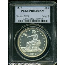 <table><tbody><tr><td><table> <TR><TD width="100%"><TABLE cellSpacing=1 cellPadding=3 width="100%" border=0><TBODY><TR><TD width="100%" bgColor=#79735c><FONT face=arial color=#ffffff size=3><B>Description</B> </FONT></TD></TR><TR><TD width="100%" bgColor=#ffffff><FONT face=arial size=2><B>1877 T$1 PR65 Deep Cameo PCGS.</B></I> Breen-5808. This is a scarcer proof variant that shows minor repunching on the upper right foot of the 1 and the base of the 8 in the date are diagnostic of this variety. Bowers (1993) states that "only a small number of [proof 1877 Trade Dollars] are of this variety." The surfaces are brilliant throughout and the fields deeply mirrored. Contrasted against the flashy proof mirrors are the heavily frosted devices that give the coin its exceptional cameo effect. Very scarce as such. Population: 1 in 65, 0 finer (10/03). </FONT></TD></TR></TBODY></TABLE></TD></TR></TBODY></TABLE><BR><A name=PricesRealized></A><TABLE cellSpacing=0 cellPadding=0 width="100%" bgColor=#000000 border=0><TBODY><TR><TD width="100%"><TABLE cellSpacing=1 cellPadding=3 width="100%" border=0><TBODY><TR><TD width="100%" bgColor=#79735c><A name=PR><FONT face=arial color=#ffffff size=3><B>Previous Prices from Heritage Auctions</B> </FONT></A></TD></TR><TR><TD bgColor=#f6f6ed>No Prior Data Recorded </TD></TR><TR><TD bgColor=#ffffff><FONT face=arial size=1 ?>PLEASE NOTE: All prices realized reflect the final hammer price PLUS the buyer's premium in auctions that charge a buyer's premium. Each item has a notation at the top of the listing indicating whether that lot included a buyer's premium. Example: A item that sells with a final hammer price of $100 and a 20% buyer's premium will display with a price realized of $120. All information listed is intended to be as accurate as possible, but errors are possible. Please use this guide carefully and inform us of any inaccuracies. </FONT></TD></TR></TBODY></TABLE></TD></TR></TBODY></TABLE><BR><TABLE cellSpacing=0 cellPadding=0 width="100%" bgColor=#000000 border=0><TBODY><TR><TD width="100%"><TABLE cellSpacing=1 cellPadding=3 width="100%" border=0><TBODY><TR><TD width="100%" bgColor=#79735c colSpan=6><FONT face=arial color=#ffffff size=3><B>Price Guide*</B> </FONT></TD></TR><TR bgColor=#f6f6ed><TD align=middle><B>Grade</B> </TD><TD align=middle><B>Coin World<BR>(Trends)</B> </TD><TD align=middle><B>Numismedia<BR>Retail</B> </TD><TD align=middle><B>Numismedia<BR>Wholesale</B> </TD><TD align=middle><B>Coin<BR>Universe</B> </TD><TD align=middle><B>Heritage<BR>Value Index</B> </TD></TR><TR bgColor=#ffffff><TD align=middle>64</TD><TD align=right>---</TD><TD align=right>---</TD><TD align=right>---</TD><TD align=right>---</TD><TD align=right>---</TD></TR><TR style="FONT-WEIGHT: bold" bgColor=#cccfdd><TD align=middle>65</TD><TD align=right>---</TD><TD align=right>---</TD><TD align=right>---</TD><TD align=right>$21,000.00</TD><TD align=right>$14,700.00</TD></TR><TR bgColor=#ffffff><TD align=middle>66</TD><TD align=right>---</TD><TD align=right>---</TD><TD align=right>---</TD><TD align=right>---</TD><TD align=right>---</TD></TR><TR bgColor=#ffffff><TD colSpan=6><FONT size=1>*All information listed is intended to be as accurate as possible, but errors are possible. No item may be returned or refused based on this information which is provided as a service to our customers. You should contact each pricing source directly to determine the accuracy of this information. </FONT></TD></TR></TBODY></TABLE></TD></TR></TBODY></TABLE><BR><TABLE cellSpacing=0 cellPadding=0 width="100%" bgColor=#000000 border=0><TBODY><TR><TD width="100%"><TABLE cellSpacing=1 cellPadding=3 width="100%" border=0><TBODY><TR><TD width="100%" bgColor=#79735c><FONT face=arial color=#ffffff size=3><B>Population Guide</B> </FONT></TD></TR><TR bgColor=#ffffff><TD align=middle><!-- Begin Output of Population Grid--><TABLE cellSpacing=0 cellPadding=0 width="100%" border=0><TBODY><TR><TD vAlign=center><TABLE cellSpacing=0 width="100%" border=1 cellsadding="3"><TBODY><TR><TD vAlign=center><TABLE cellSpacing=0 cellPadding=3 width="100%" border=1><TBODY><TR><TD vAlign=center align=middle bgColor=#f0f1e8 colSpan=2 <CENTER><FONT face=Arial size=2><B>PCGS Pop </B></FONT><CENTER></CENTER></TD><TD vAlign=center align=middle bgColor=#f0f1e8 colSpan=2><CENTER><FONT face=Arial size=2><B>NGC Pop</B></CENTER></FONT></TD></TR><TR><TD vAlign=center><FONT face=Arial size=2>(65)</FONT> </TD><TD vAlign=center align=right><FONT face=Arial size=2>1</FONT> </TD><TD vAlign=center><FONT face=Arial size=2>(65)</FONT> </TD><TD vAlign=center align=right><FONT face=Arial size=2>0</FONT> </TD></TR><TR><TD vAlign=center><FONT face=Arial size=2>(>65)</FONT> </TD><TD vAlign=center align=right><FONT face=Arial size=2>0</FONT> </TD><TD vAlign=center><FONT face=Arial size=2>(>65)</FONT> </TD><TD vAlign=center align=right><FONT face=Arial size=2>1</FONT> </TD></TR></TBODY></TABLE></TD></TR></TBODY></TABLE></TD></TR></TBODY></TABLE><!-- End Output of Population Grid--></TD></TR></TBODY></TABLE></TD></TR></TBODY></TABLE><BR><TABLE cellSpacing=0 cellPadding=0 width="100%" bgColor=#000000 border=0><TBODY><TR> <font color='#000000'><span style='background-color: #FFFFFF'><td bgcolor='#FFFFFE'> Important notice: Heritage usually auctions material at the rate of 200-250 lots per hour. On some occasions eBay Live bid software or the Internet may not be able to keep up with the pace of the auction. We recommend placing a realistic absentee bid now as insurance to avoid disappointment. Occasionally the auctioneer may eliminate or reject an eBay Live bid, and the auctioneer may also reopen a lot after the close of the eBay live bidding (usually because we missed an audience bid), and may reject your bid even if it shows you as the winning bidder. By bidding via eBay Live, you agree that Heritage may award the lot to another bidder at its sole discretion under the circumstances described above or any other reasonable circumstances. Since eBay bids are