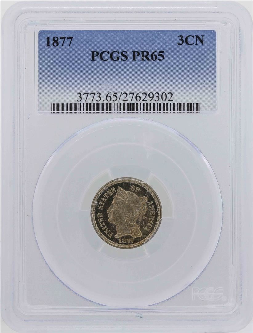 One 1877 Three Cent Nickel Proof Coin PCGS PR65. PCGS Graded.