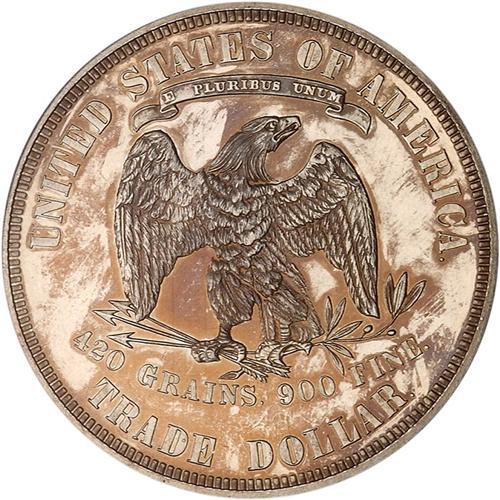 Well struck, bright with some hairlines from a reported original proof mintage of 510 coins, although Breen reports less. This is solid example of a proof Trade Dollar of this date. Double punched 8 in the date variety. Bid is slightly low at $1270.