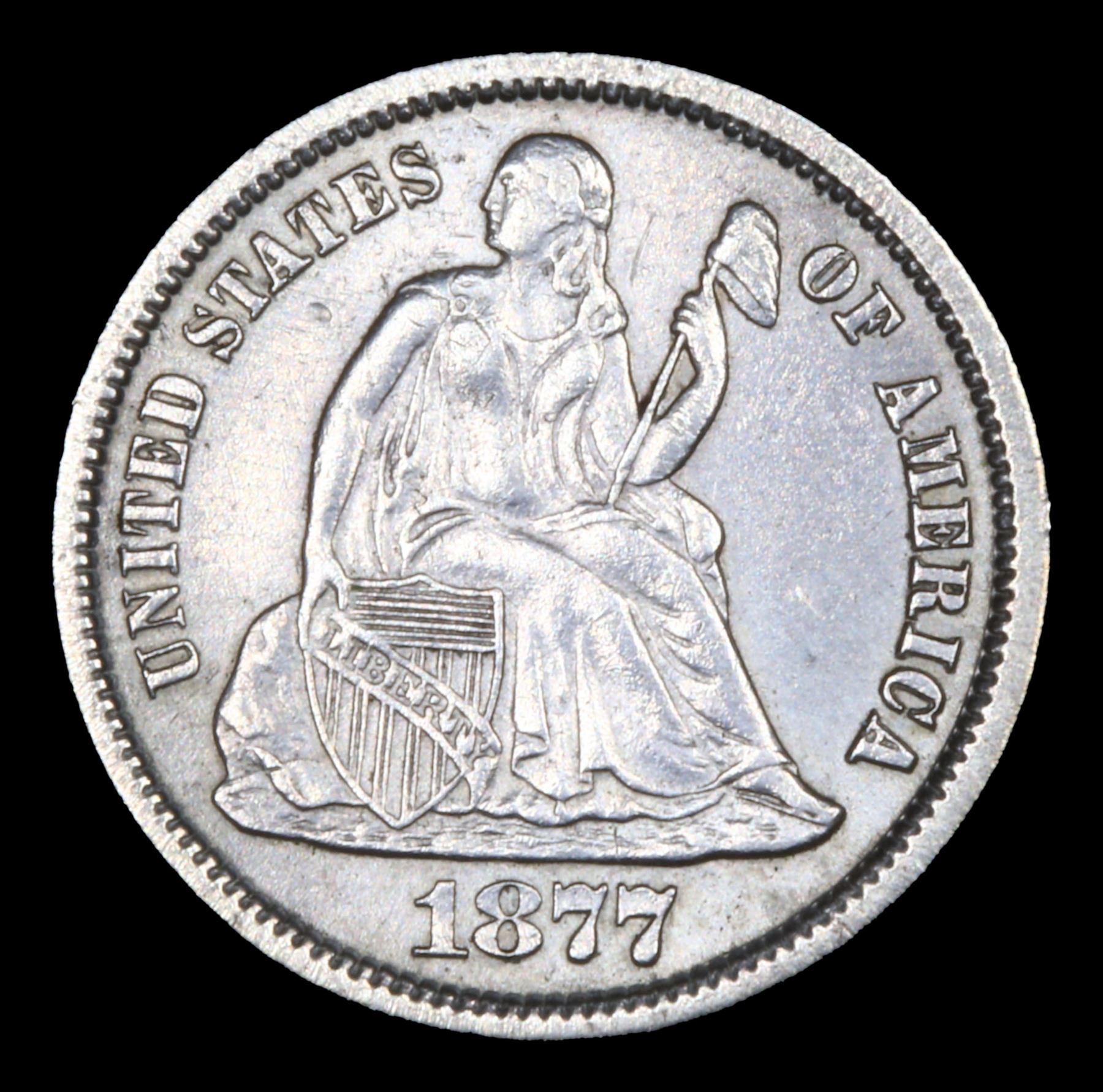 1877-cc Seated Liberty Dime 10c Graded au58 BY SEGS.