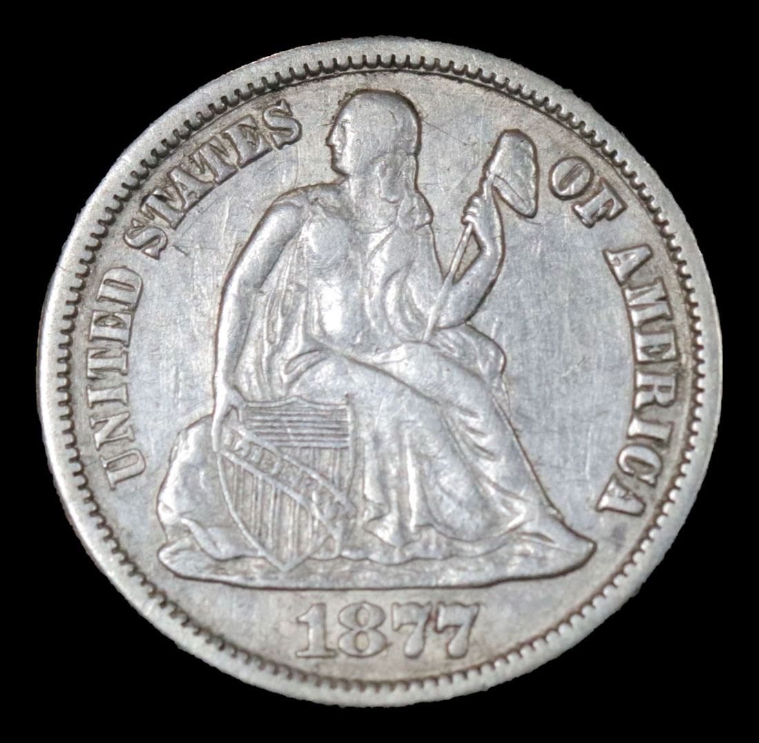 1877-cc . . Seated Liberty Dime 10c Grades xf.