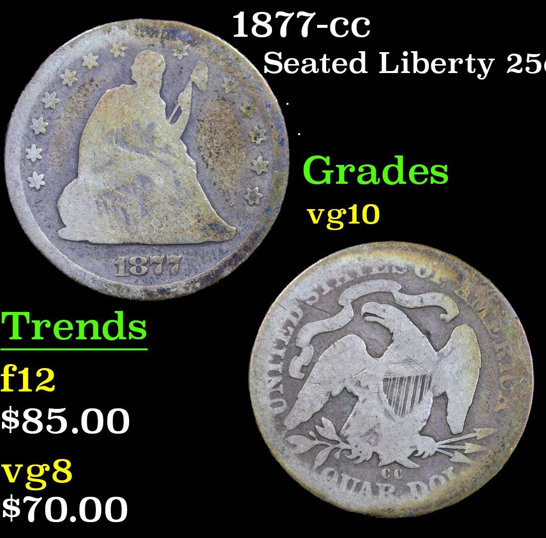 1877-cc . . Seated Liberty Quarter 25c Grades vg+.