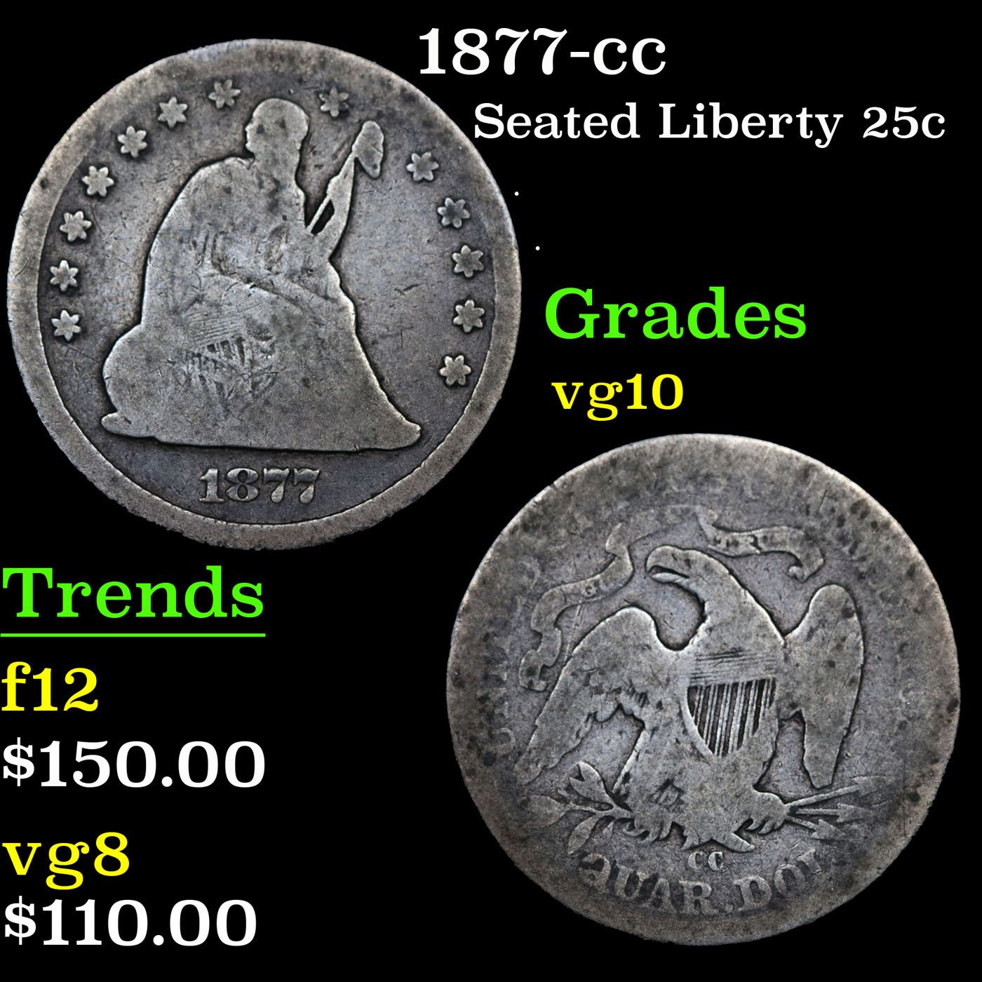 1877-cc Seated Liberty Quarter 25c Grades vg+.