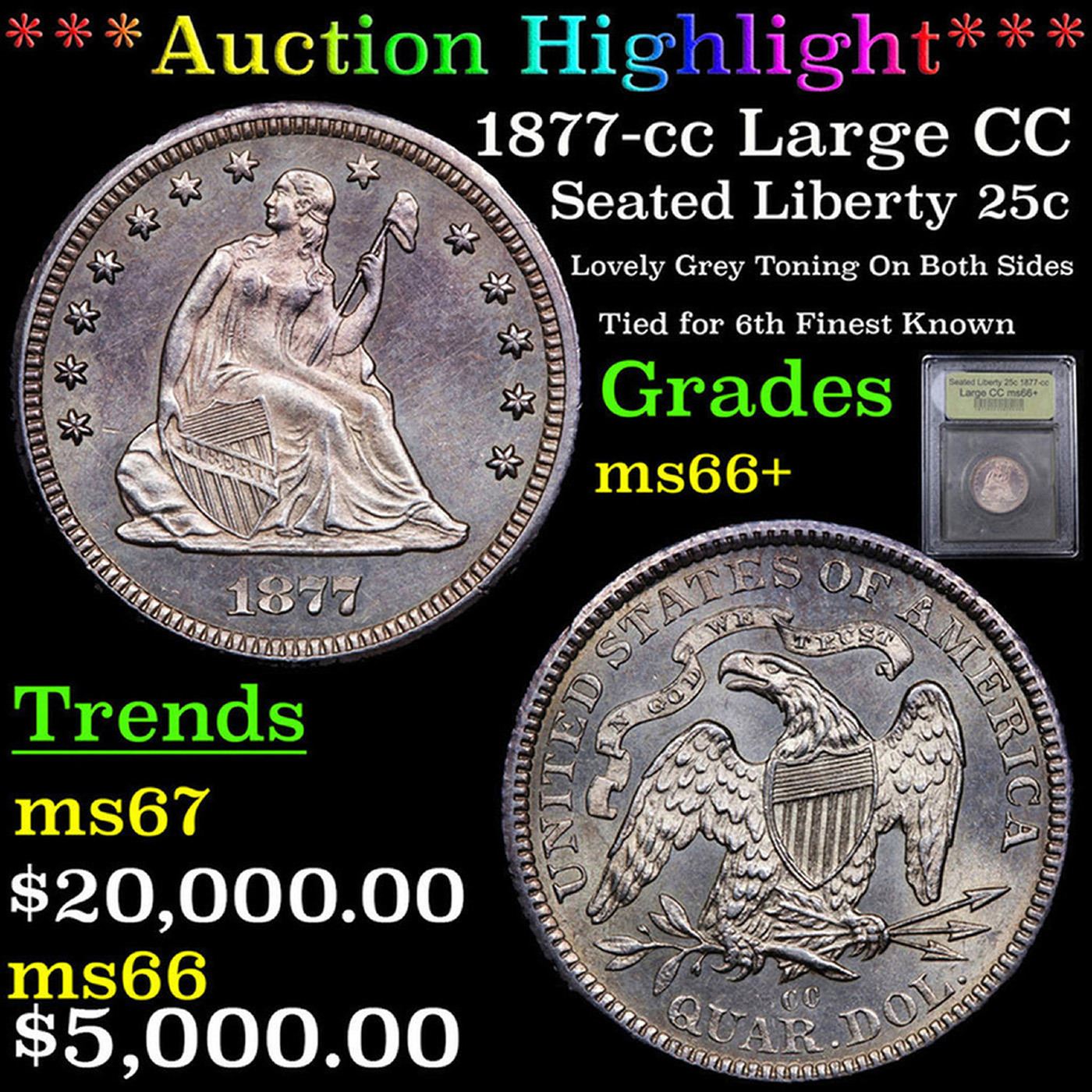 1877-cc Large CC Near TOP POP! Seated Liberty Quarter 25c Graded GEM++ Unc By USCG. A Key Date's Pick, Bid to Win, Don't let it get Away, you might not find its equal Coin. I give this coin my highest recommendation