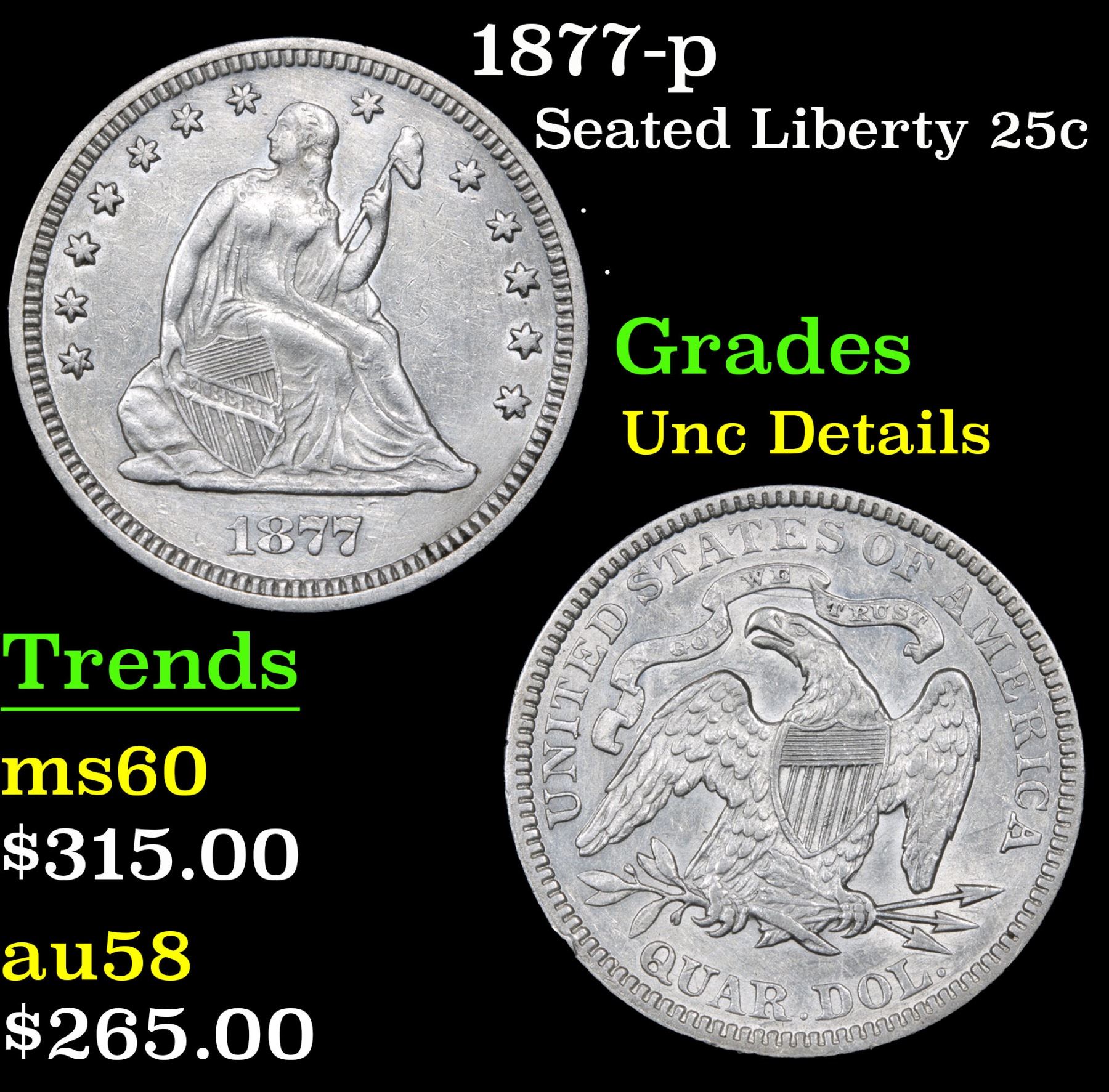1877-p Seated Liberty Quarter 25c Grades Unc Details.