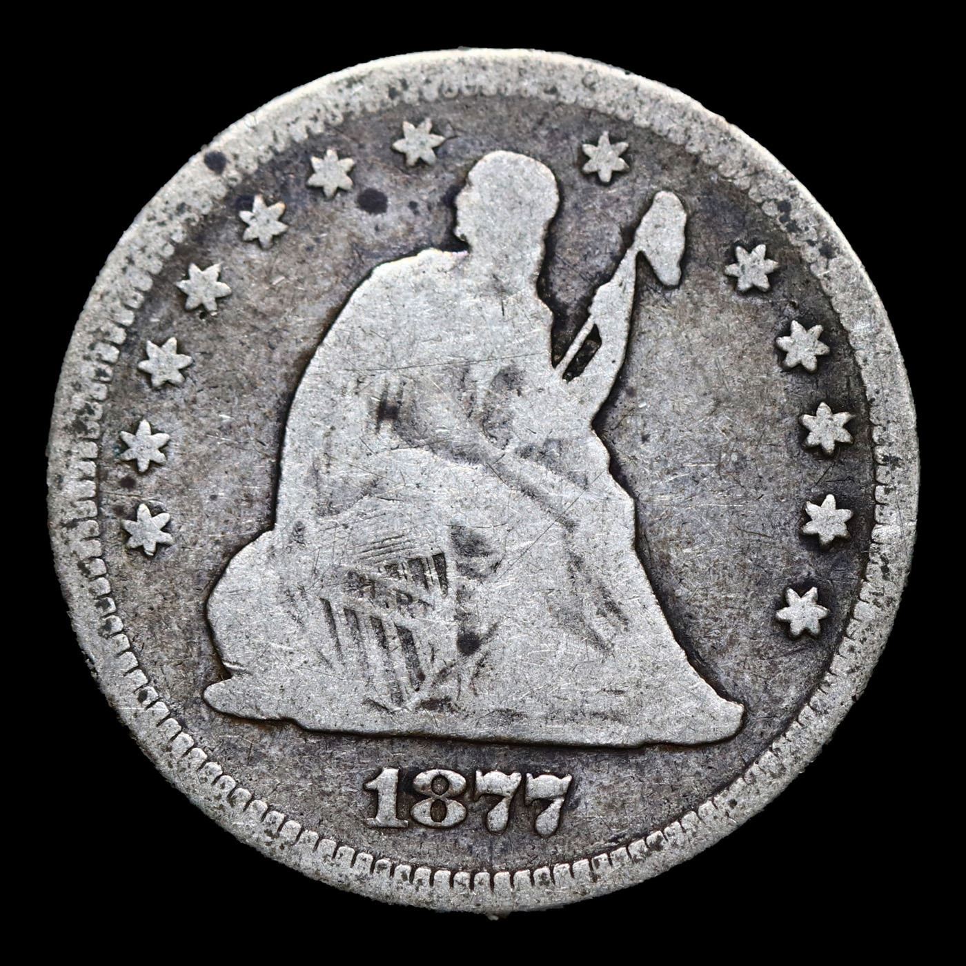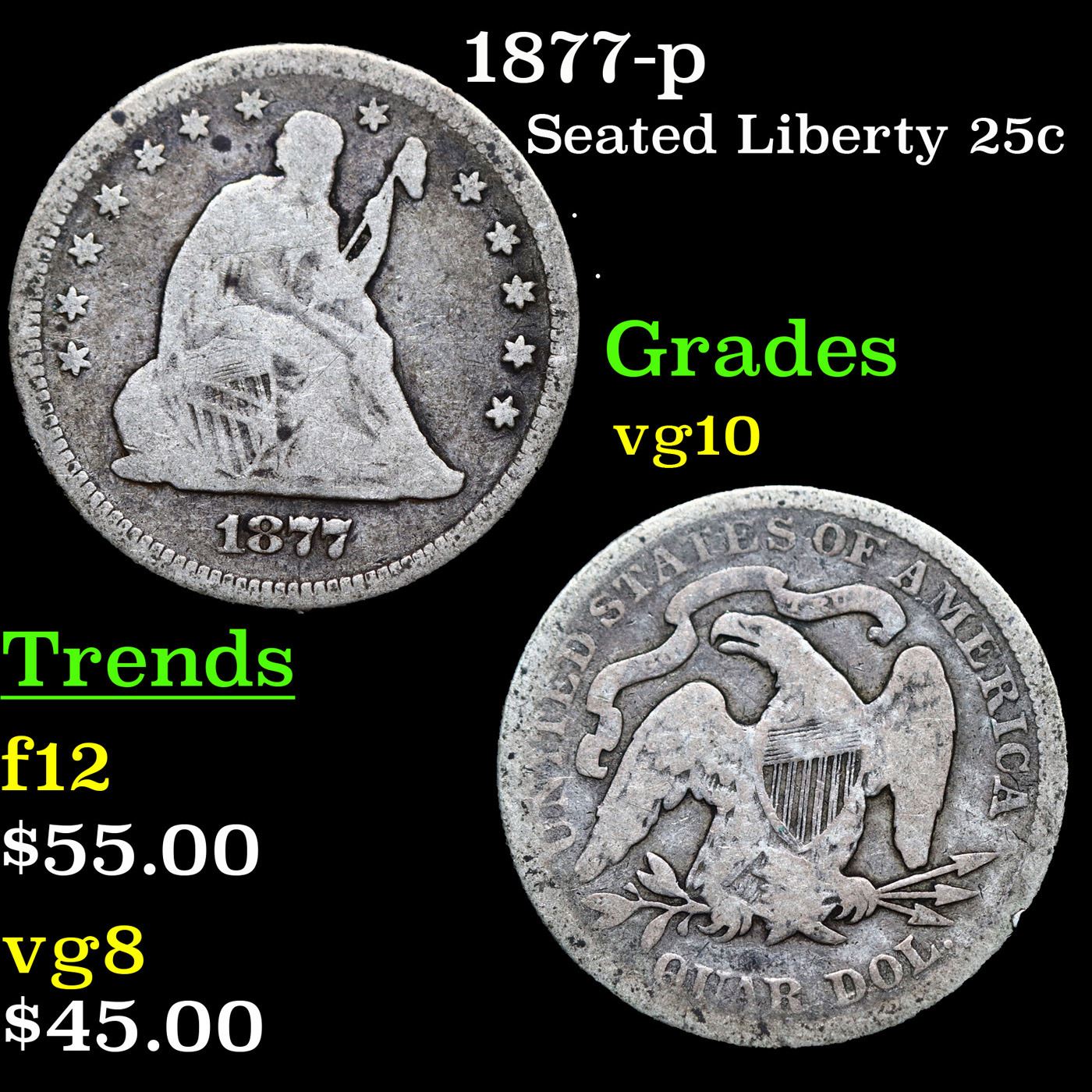 1877-p Seated Liberty Quarter 25c Grades vg+.