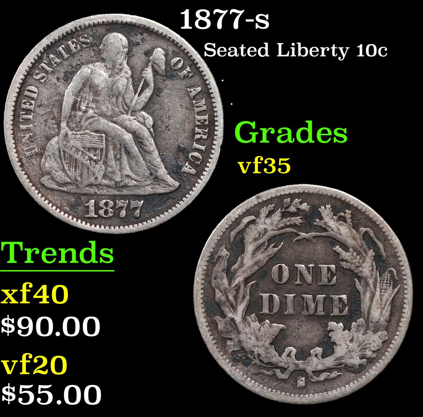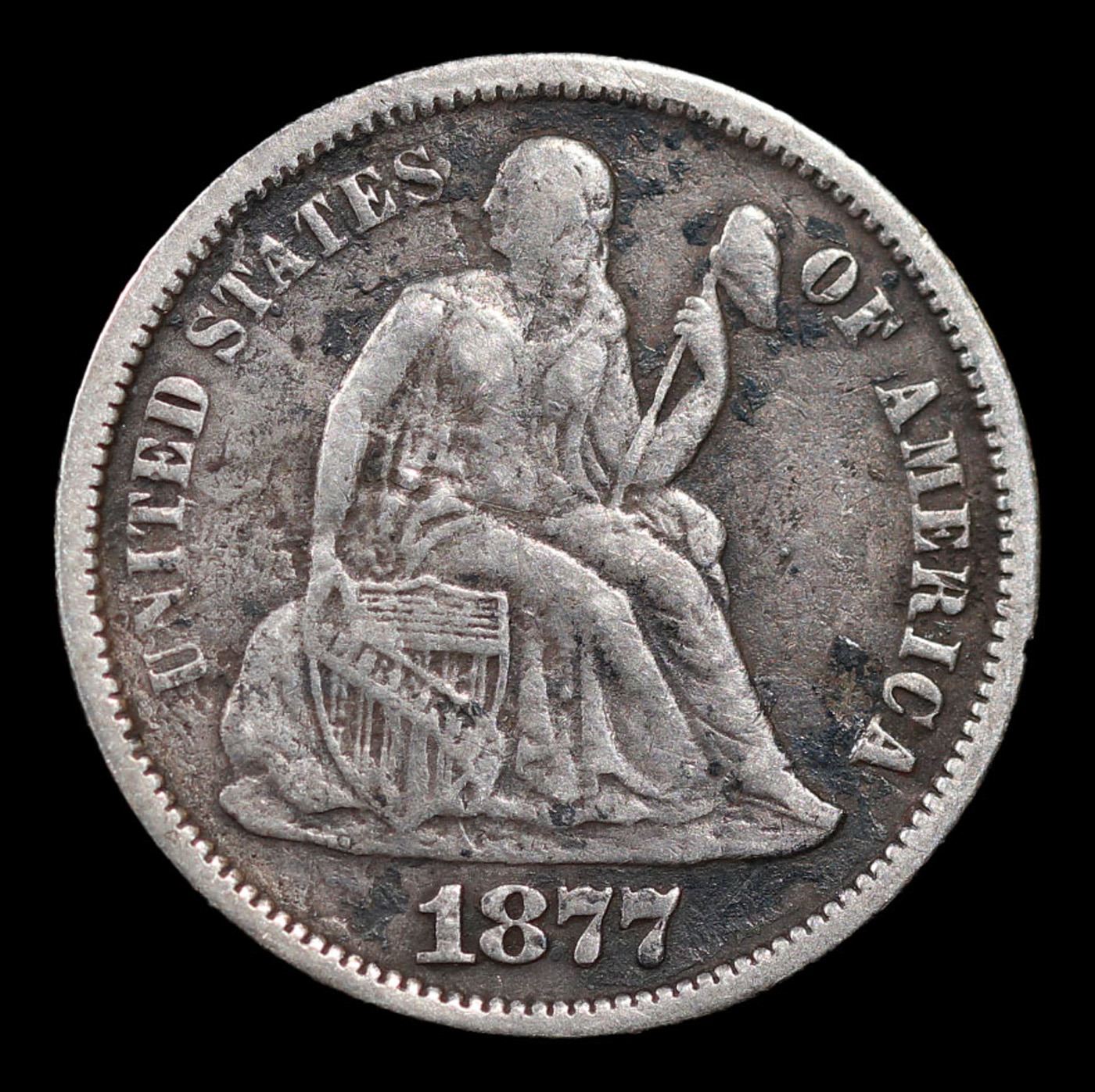 1877-s Seated Liberty Dime 10c Grades vf++.