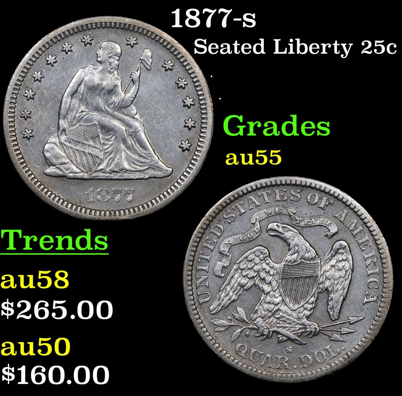 1877-s . . Seated Liberty Quarter 25c Grades Choice AU.