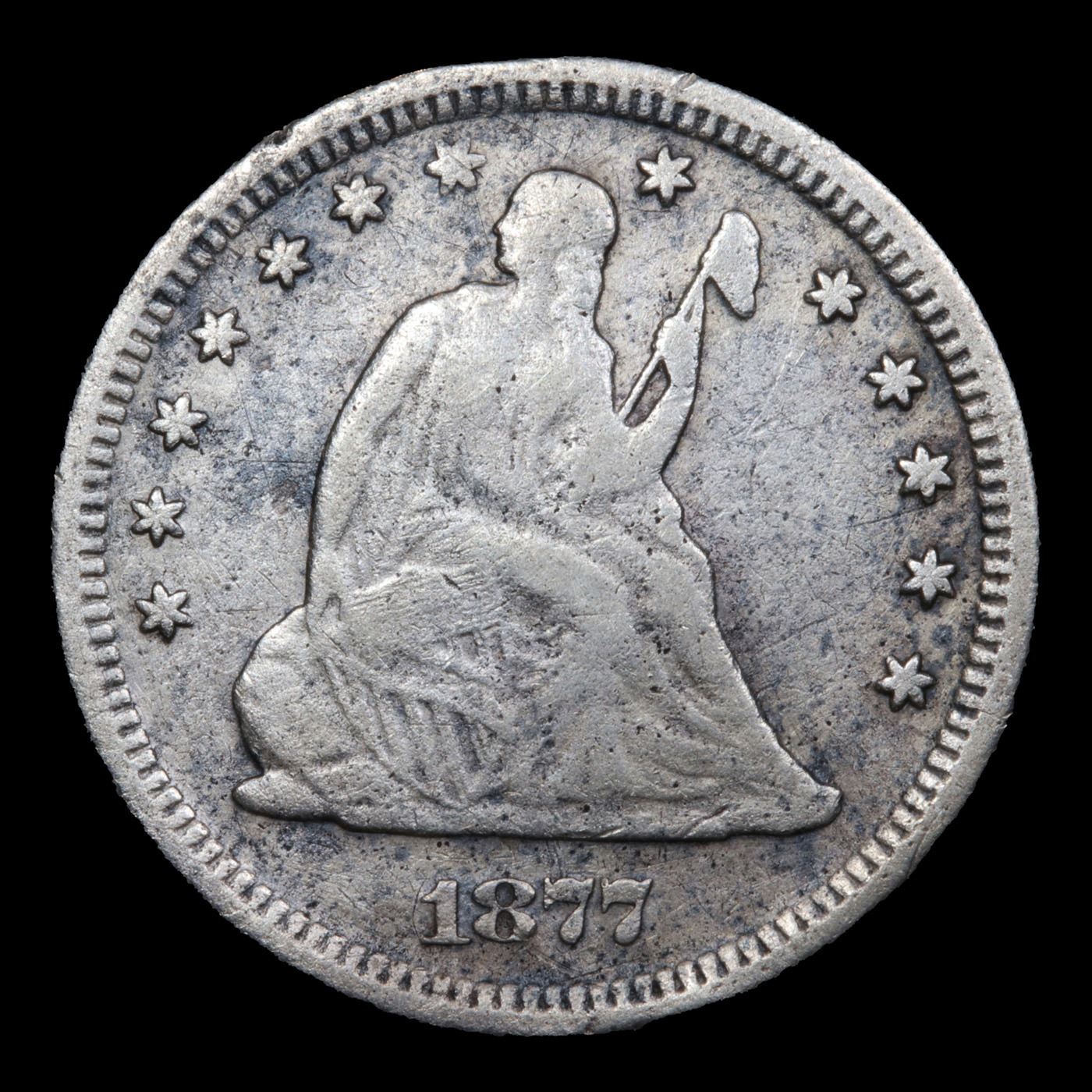 1877-s Seated Liberty Quarter 25c Grades vf details.