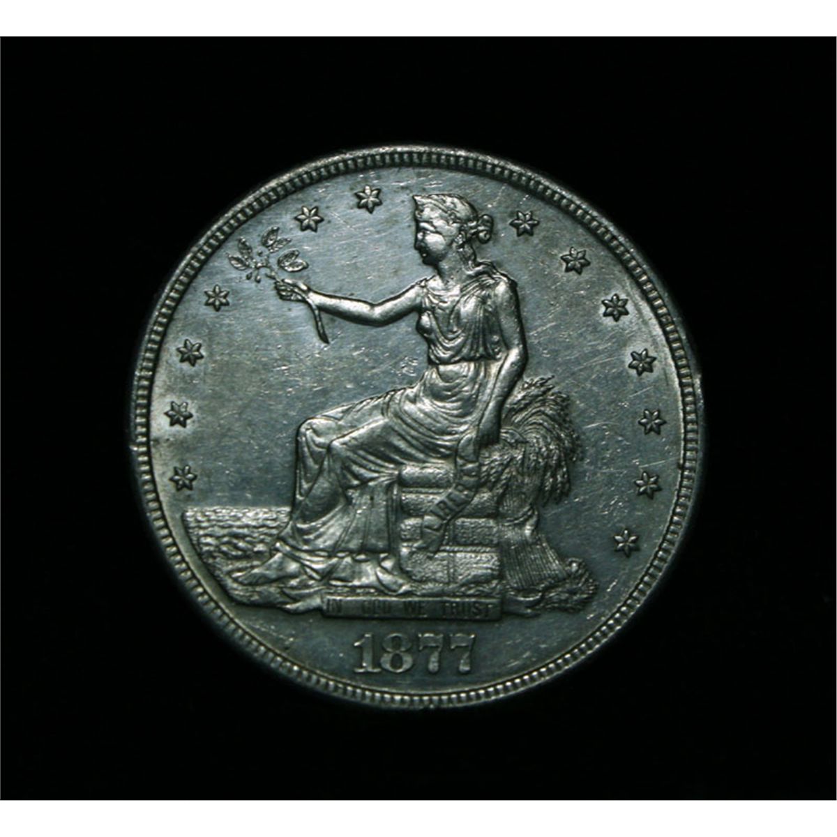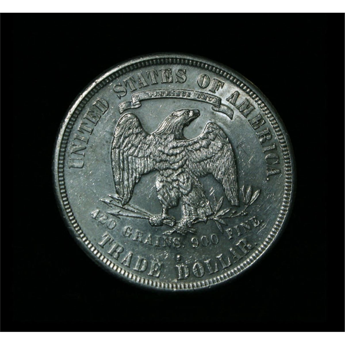 White example, Good Luster and a Strong Strike With Nice Deep Details. A great example of a scarce Uncirculated Trade Dollar. The Wholesale Greysheet lists ms60 at $875 and ms63 at $1950. Estimated Value $1000