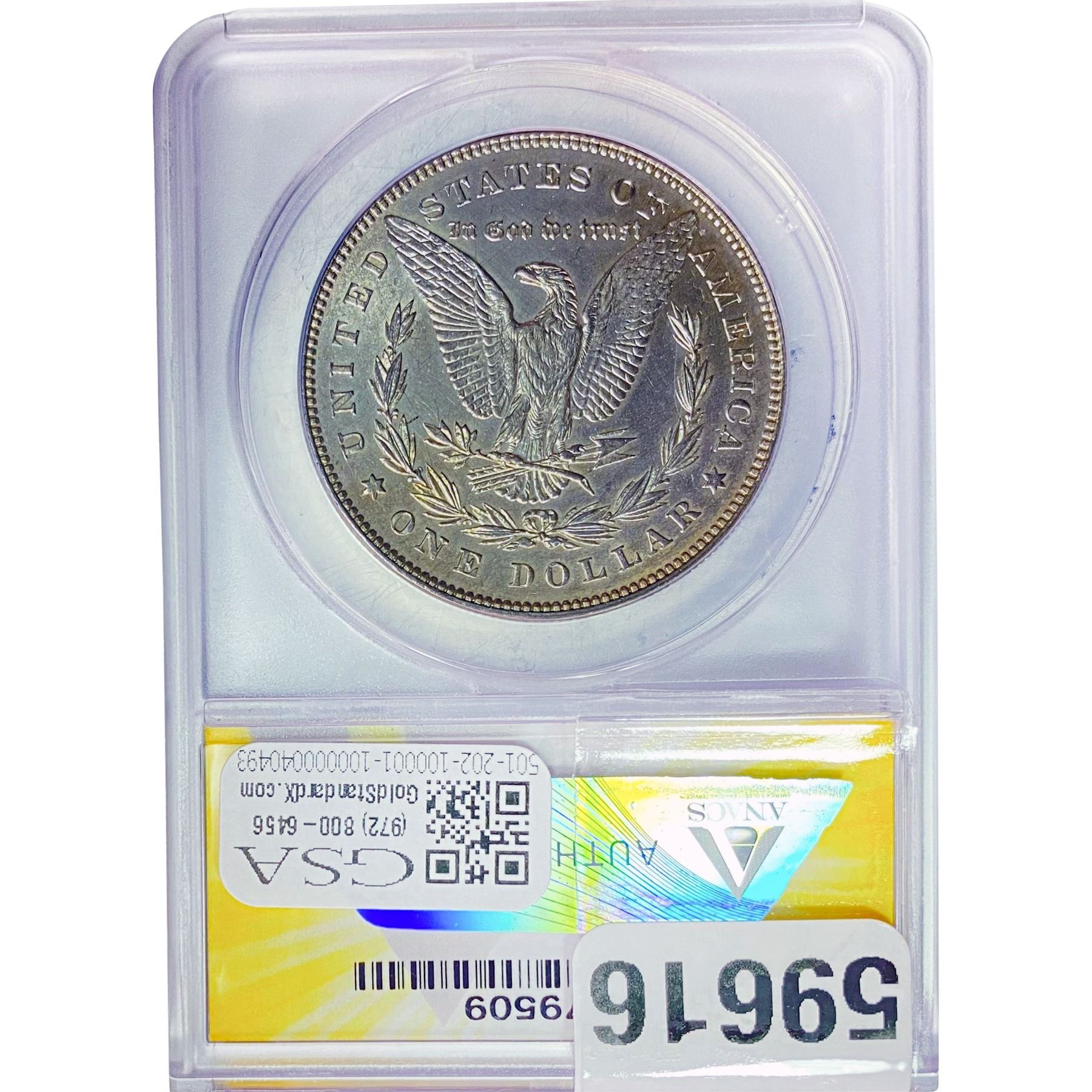 e. Coins sold referencing a third-party grading service are sold “AS IS” without any express or implied warranty, except for a guarantee by GSA that they are genuine. Removal or alteration of the holder, voids all of Bidder’s claims concerning that Product. Certain warranties may be available from the grading services and Bidders are referred to them for further details: Numismatic Guaranty Corporation (NGC), PO Box 4776, Sarasota, FL 34230, www.ngccoin.com/services/writtenguarantee.asp; Professional Coin Grading Services (PCGS), PO Box 9458, Newport Beach, CA 92658, www.pcgs.com/guarantee.html; ANACS, 6555 S. Kenton St., Ste. 303, Englewood, CO 80111; and Independent Coin Grading Co. (ICG), 7901 East Bellview, Ave., Suite 50, Englewood, CO 80111.