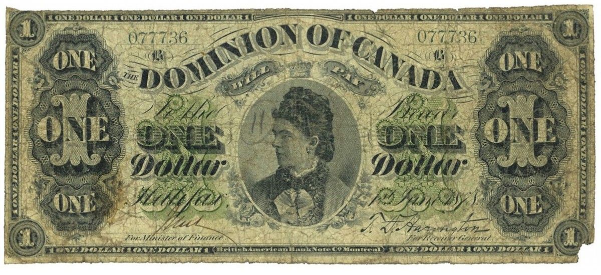 1878 $1 DC-8H #077736 PMG VG10 Net. Payable to Halifax. Rare. Small corner piece missing.
