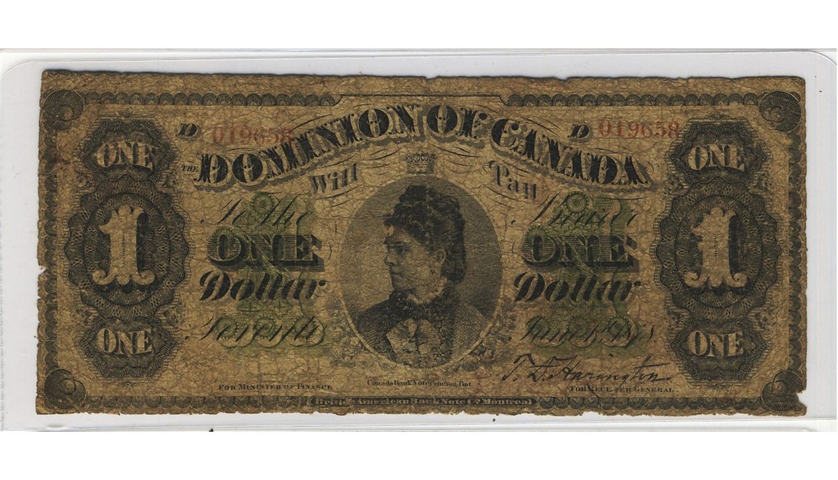 1878 $1 DC-8b Scallop Borders, Toronto  #019658.  Grades VG with minor border issues.