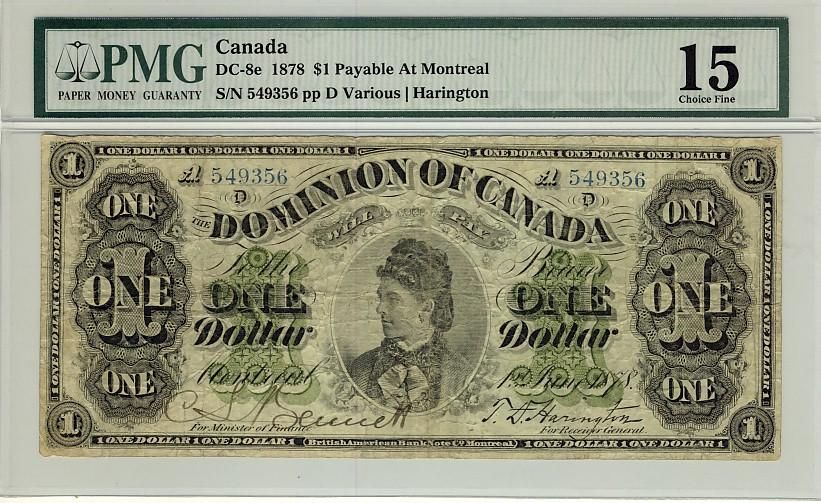 1878 $1 DC-8e #549356, PMG F15, a decent example.