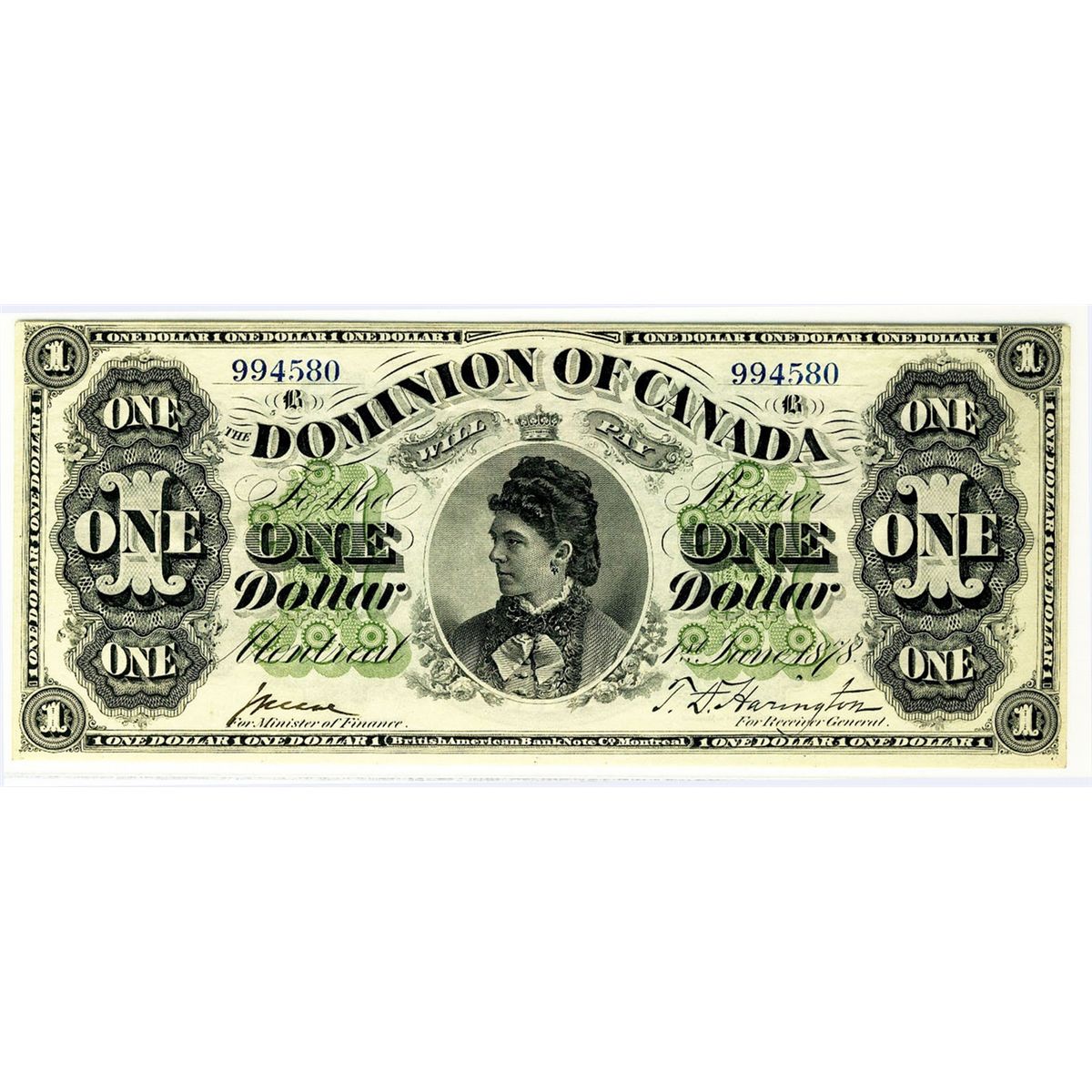 1878 $1 DC-8e-ii #994580. CCCS AU55. Sharp and clean example, rare for grade.